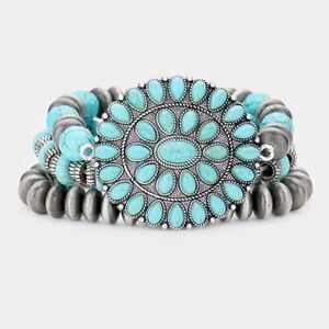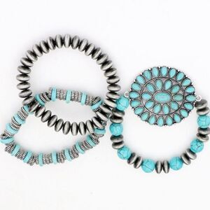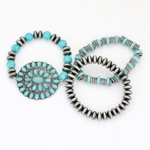 3PCS - Natural Stone Squash Blossom Stretch Bracelets
