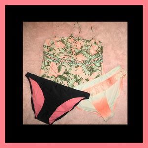 3 PC SWIMSUIT BIKINI FLORAL HALTER TOP TANKINI OP TIME AND TRU-WOMENS SIZE XL