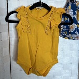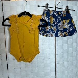3-PIECE Baby Girl Yellow Bodysuit and Flower Skirt Hair Band Outfits