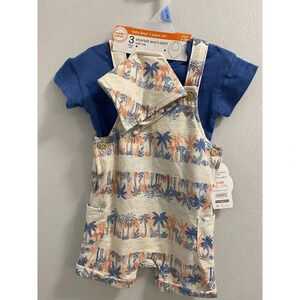 3 PIECE SHORTTALL. 1 TEE SHIRT. 1 SHORTALL. 1 BIB. SIZE 3-6 MONTHS.