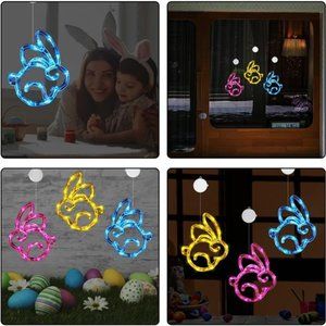 3Pack Easter Window Lights Easter Bunny Lights Decorations Battery Operated