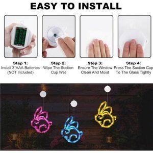 🧿Easter Decoration Lights: You will get 3 packs of pink blue yellow Easter LED hanging window lights in the shape of Easter bunny that come with suction cups. The Easter ornament diameter is 6.1 inches, and the string drops 18.6 inches. Our cute Easter window lights are ideal for Easter decor. 🧿Hang It Anywhere: Each Easter window lights comes with a suction cup. No tools needed! Just install them on glass, gates, cabinets, etc. Please wipe the window or other smooth surface before installation and add appropriate water to increase the adhesion to hang it firmly. What's more, each pack provides with bonus 3 clear adhesive hooks, preventing falling with strong concealment. 🧿Battery Operated For Easy Use: Those hanging window lights are powered by 3 AAA batteries (NOT INCLUDED). Refusing limited power cord or USB plug. 6 hours ON 18 hours OFF timer function in cycle is energy-saving, and you don’t need to set it up everyday. Just press the button to control on/off. 🧿Timer Function: 6 hours ON 18 hours OFF timer function in cycle is energy-saving, and you don’t need to set it up everyday. Once you turn on the light, the built-in timer function will be activated. Just press the button to control on/off.