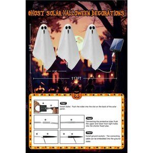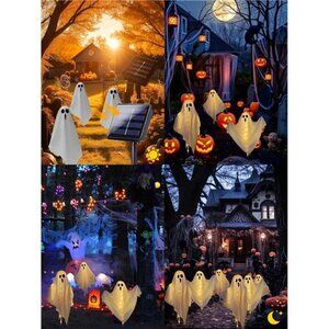 3-Pack Ghost Solar Powered Halloween Decorations Outdoor, Auto On/Off, Solar