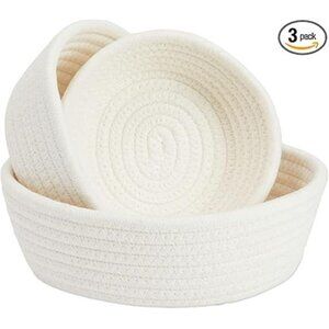 🧿White Woven Baskets: These small white cotton rope baskets come in three sizes, a stylish and functional storage solution for bedrooms, laundry rooms, bathrooms, entryways, and nursery