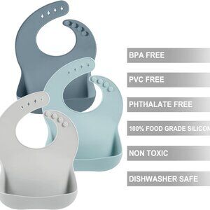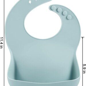 Features: Made of ultra-soft silicone, these sturdy bibs have a large, deep catch pocket that keeps crumbs and spills off your baby's clothes. The adjustable neck closure with four sizes ensures a perfect fit as your little one grows. Easy to clean — dishwasher safe and stain resistant, so cleanup is quick and simple.