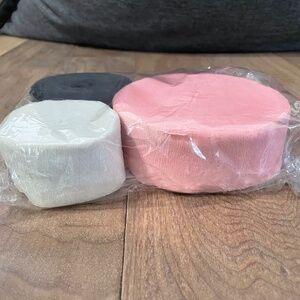 Dimensions: 5 1/2" diameter (pink); 3" diameter (black and white)