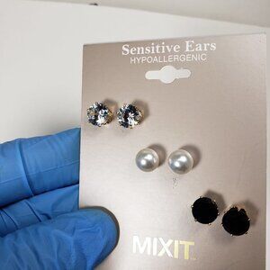 ✔️ Includes 3 pairs: crystal, faux pearl & black