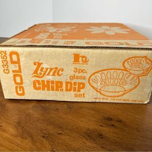 3Pc CHIP'n'DIP Set ~ HazelWare from Lyric Gold / Amber GLASS ~ Vtg MCM