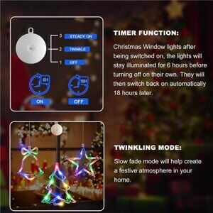 Festive Window Silhouettes: Includes bell, tree, and star-shaped lights, each featuring 10 LED bulbs. Suction cups allow easy attachment to windows, glass, or smooth surfaces for a colorful, Christmas-themed glow.