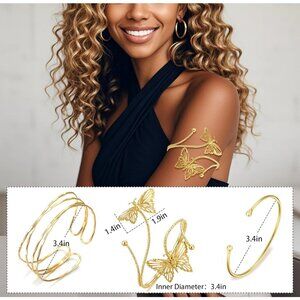 Multi Occasion Jewelry: Gold upper arm cuff serves as a statement piece of jewelry, can help you create charming looks at dances, bars, performances, weddings, parties, music festivals, and many other special occasions, or simply elevating everyday attire with a touch of elegance.