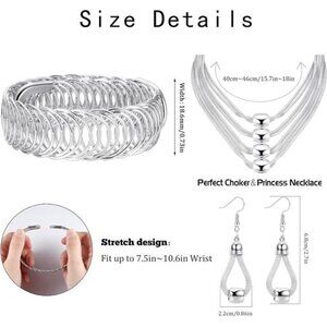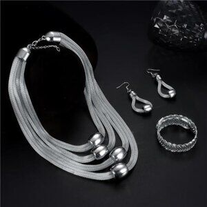 Elevate your look with this **sleek and sophisticated silver jewelry set**, featuring a statement necklace, matching earrings, and a chic bracelet.