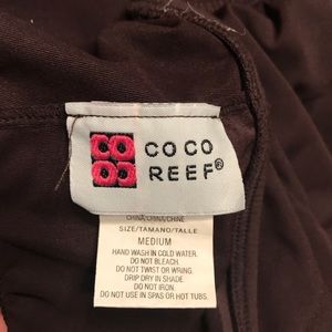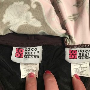 Gorgeous 💛 3-Piece Bikini / Tankini set with skirt swim bottom. The tops are designed to fit like a bra and are sized for a 32/34D. The bikini top and bottom are in brown and the tankini’s cream/ brown and pink floral pattern complement the ensemble.