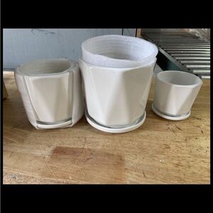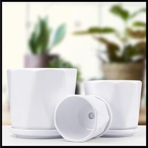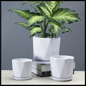 3-Piece Ceramic Plant Pots 4.3+5.5+6.6 inch white. NIB