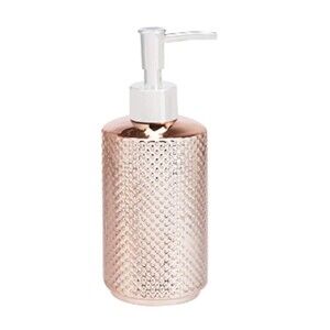 -Includes 1 toothbrush container, 1 soap dish, and 1 soap dispenser; durable ceramic with a Rose Gold finish