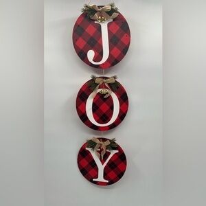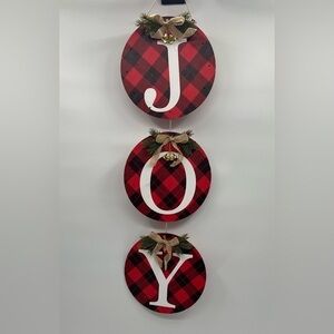 Get into the festive spirit with this charming Christmas wreath decoration set! Perfect for adding a rustic touch to your holiday decor, this kit includes a "Joy" sign and beautiful hanging garlands, all featuring a classic black and red plaid design.
