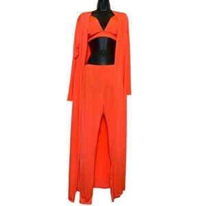 3-Piece Neon Orange Loungewear Set Fashion Nova Bra Pants & Long Duster Large