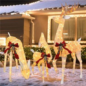 3-Piece Pre-Lit Christmas Reindeer Family Set, 3D Plug in 170 Count Warm White