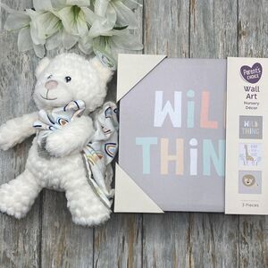 3-Piece Set Baby Nursery Canvas Wall Art, Jungle & Imagine Plush Bear w/ Blanket