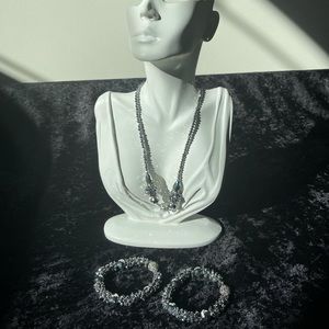 Silver Beaded 3-Piece Necklace Set - NEW. Priced per set. Each of the ends connect by magnets. The Necklace is interchangeable, it can be worn 5 different ways for many occasions, casual or dressy.