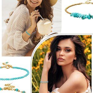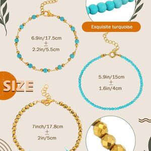 3-Piece Turquoise Beaded Bracelets for Women Adjustable Dainty Boho Jewelry