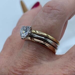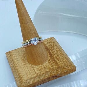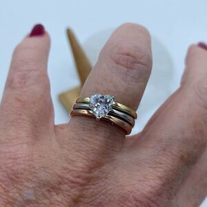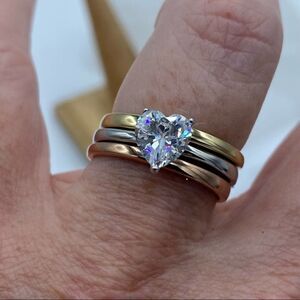 3-Piece Women's Stainless Steel Rings With Heart Shaped Cubic Zirconia sizes 5,9,10