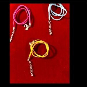 Premier Designs Leather Cord Necklaces (3) Pink, Blue, Yellow