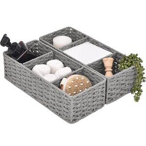 3-Section Wicker Baskets for Shelves,Hand-Woven Round Paper Rope Storage Baskets