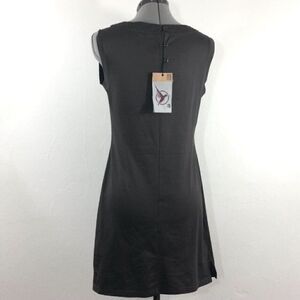 Three Stones boutique NWT charcoal gray dress with black front detailing.