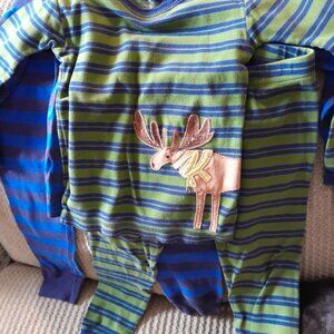 3T Boys Gap, Hanna Anderson, Carters, Columbia Lot. Hanna Andersson Pj's organic cotton have one little hole in the back of the pants as shown in the photo. All others good or great used condition. Carters Organic cotton moose PJ's, Gap lined jeans with adjustable elastic as shown, Gap sweater, Columbia fleece is 4t.