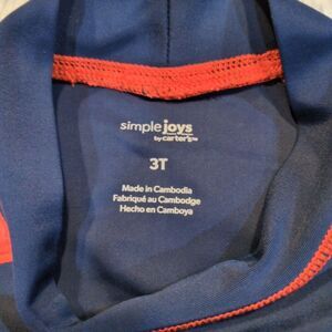 3T Carter's Simple Joys Rashguard Swim Shirt Red Navy