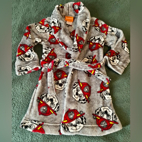 Adorable firefighter themed robe featuring the Paw Patrol firefighter puppy. Soft, plush and warm for after bath or bedtime. It’s so cute and your toddler will love it! Size 2t/3t in excellent condition. I have more items in this size.