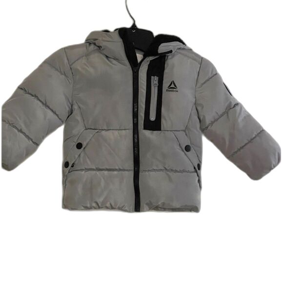 3T Reebok Grey Puffer Jacket Zips Black Accents Fleece lined ~Warm Coat Boys