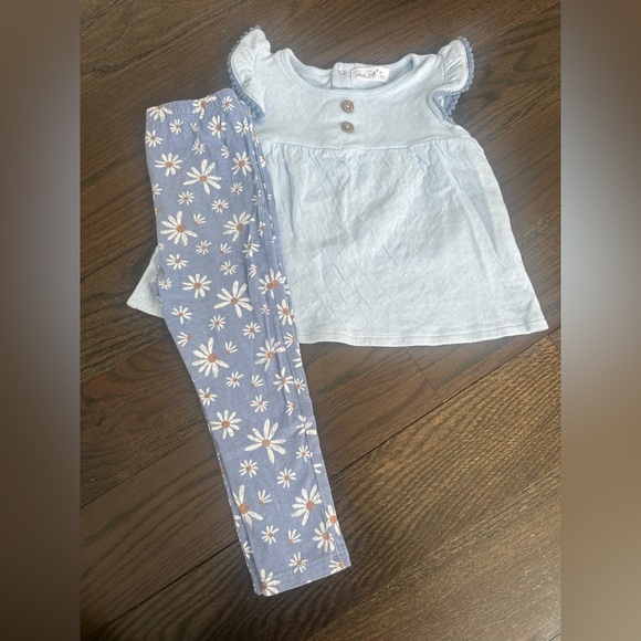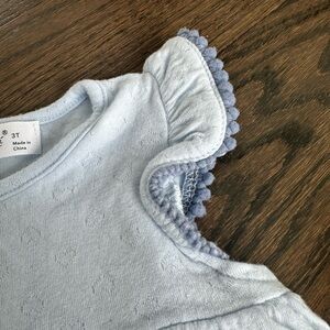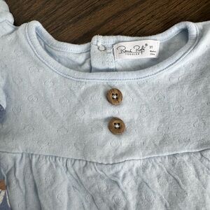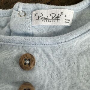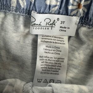 Toddler girl size 3T. Beautiful two piece matching outfit. Rene Rofe brand. Good condition - please see photo of very faint stain on shirt. Also, the ruffle bumps on one shoulder are slightly smaller than the other. It came this way.