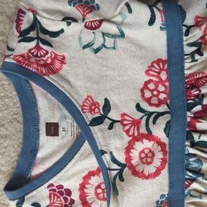 3T watercolor floral. 100% cotton. long sleeve wrap neck dress. minor wear