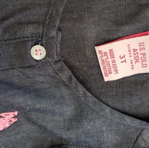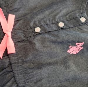 US Polo Association Lightweight Cotton Sleeveless Denim Blue Dress with Pink Details and Logo.