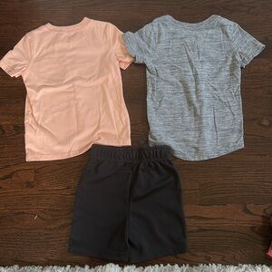 All size 3T. Cat and jack grey shirt. Carters crab shirt. Unknown brand of athletic shorts, run small in my opinion. Used but in excellent condition