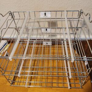 Organize kitchen or pantry essentials with this durable chrome wire rack. Adjustable dividers allow customization for various items.