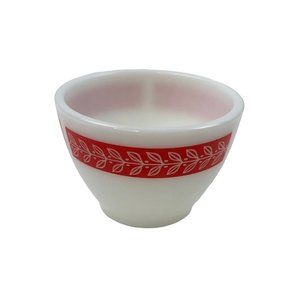 *3-Vtg Anchor Hocking Red Laurel Leaf Boullion Custard Cup Milk Glass Retro