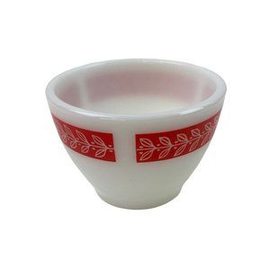 3-Vtg Anchor Hocking Red Laurel Leaf Boullion Custard Cup Milk Glass Mid CenturyExcellent pre-owned condition