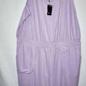3X 22W 24W Torrid Purple Jumpsuit Romper One piece Terrycloth Lounge Cover Up Swim Henley Pjs elastic waist pull on. Henley button scoop neck, Sleeveless, pockets. NWT Torrid. Measurements for reference only approximately shoulder to hem 60" under arm to under arm 25" inseam seam 28" wt 1lb 3oz