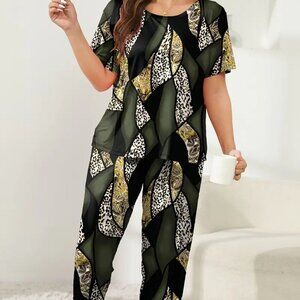 Adorable ! 3X 4X 5X PLUS SIZE Leopard & Paisley Short Sleeve Colorblock Loungewear Set