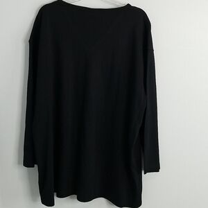 Bobbie C black v-neck patriotic t-shirt. Size 3X. United States of America flags made of beads. Great for your 4th of July celebration or summer bbq. Pit to pit 28", Shoulder to hem 30". Sleeves approx 3/4 length