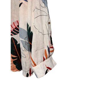 3X Cynthia Rowley Womens Floral Patterned 100% Linen Button-Front Collared Shirt