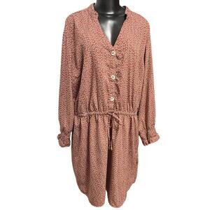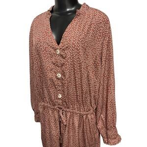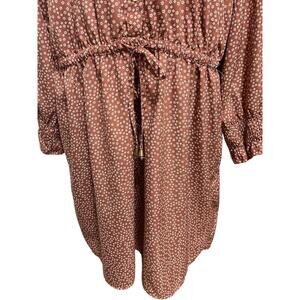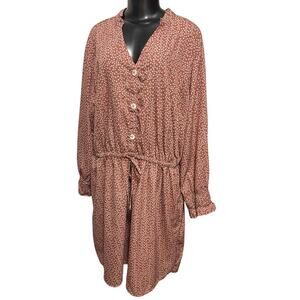 3X Indulge Floral Long Sleeve Tie Waist Dress Brown Retro