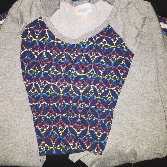 Multi-color torso design. Gray 3/4 sleeves.