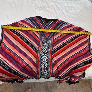 A colorful and cozy wrap that adds striking Southwestern flair to casual or dressy looks.