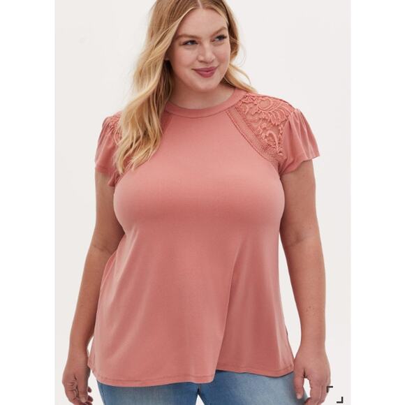 3X Torrid TOP Dusty Rose Pink Lace Stretch Poly Crepe Blouse Swing A-line NEW
