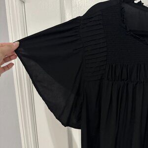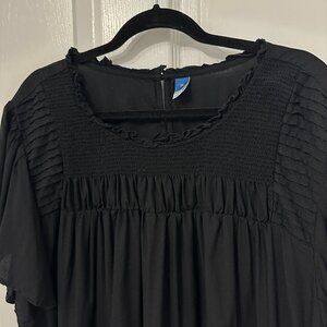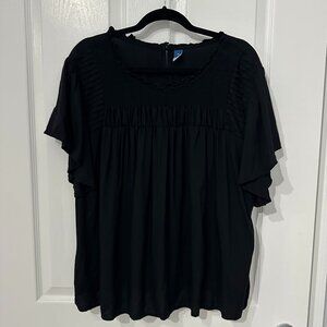 Old Navy 3X blouse, black flutter sleeve top, smocked swing blouse, plus size Old Navy top, pintucked flowy blouse, casual work top, Old Navy plus fashion, women’s black tunic top.