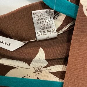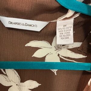 3X polyester, brown floral jacket, machine wash, line dry, 29” long. Never worn. Shoulder pads.