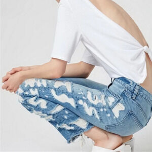 Distressed unique spring summer high fashion quality nyc designer streetwear sophisticated bikercore fun boyfriend
